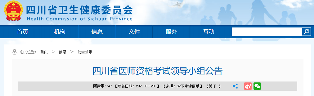 四川省医师资格考试领导小组发布关于2026年医师资格考试公告