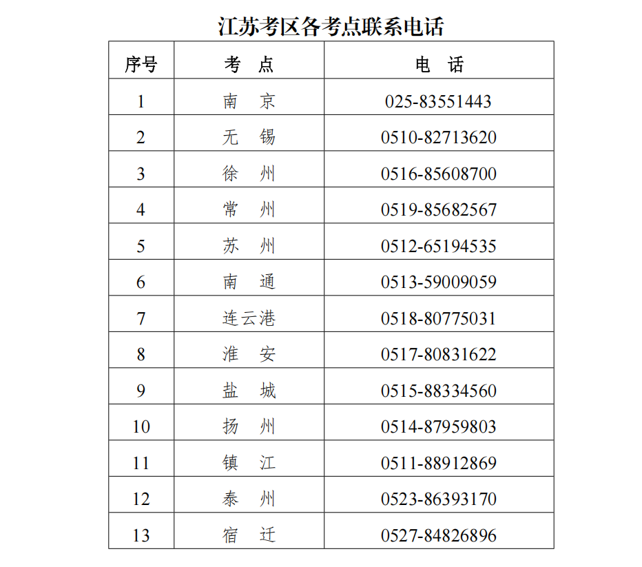 8.江苏考区各考点联系电话