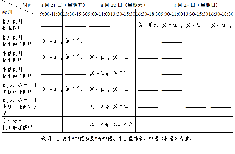 (一)临床类别、乡村全科执业助理医师6月6日—17日