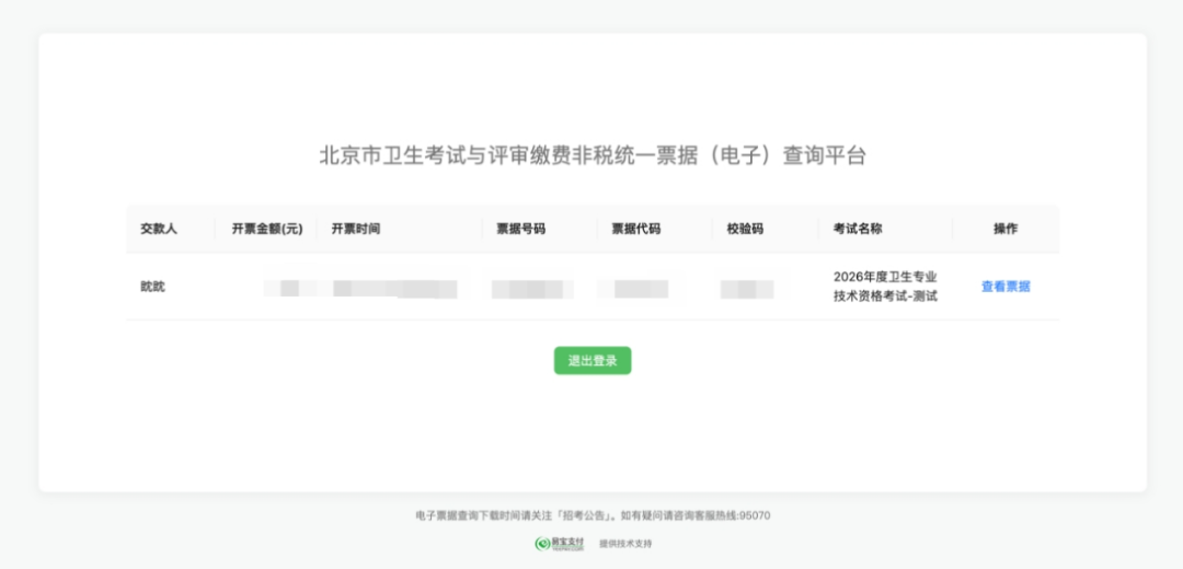 (六)考生可通过访问北京市卫生考试与评审缴费非税统一票据(电子)查询平台(网址:https://gov.yeepay.com/gov-bill-platform/home/VRUo1D),输入本人姓名、邮箱查询财政电子票据。