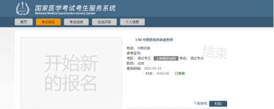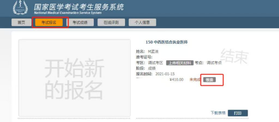 (三)完成缴费。考生最终缴费成功的标志,以国家医学考试服务平台考生服务端中的“已缴费”为准。(如下图)